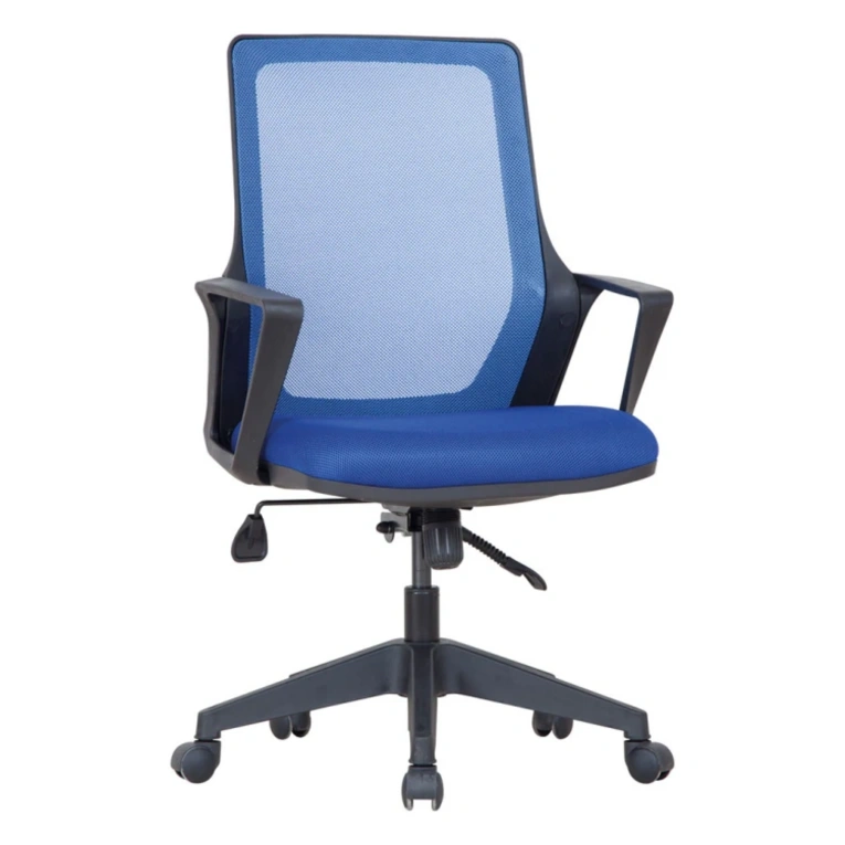 Siyah file sırtlı, ayarlanabilir kolçaklı, alüminyum yıldız ayaklı ergonomik çalışma koltuğu – Nexa.Lacivert kumaş oturumlu, file sırtlı, plastik yıldız ayaklı ergonomik ofis koltuğu – Nexa.
