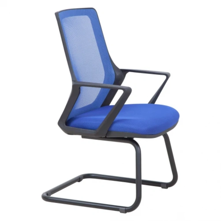 Mavi file sırtlı ELA misafir koltuğu – hafif görünümlü sabit ayak, geniş oturum, modern ofis sandalyesi.