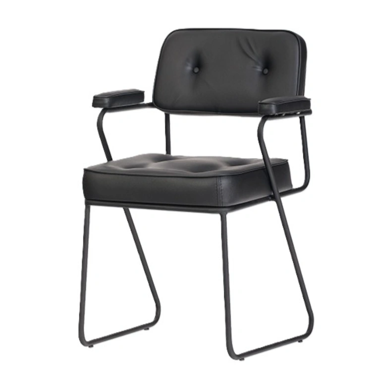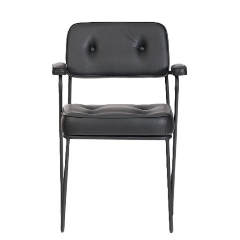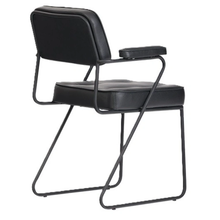 Mira misafir koltuğu, siyah döşemeli oturum ve kapitone detaylı sırt – ince kollu, dört ayaklı görünüm.