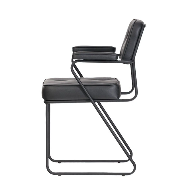 Mira misafir koltuğu yan profil – siyah döşeme, yumuşak oturum, zarif kollu modern tasarım.