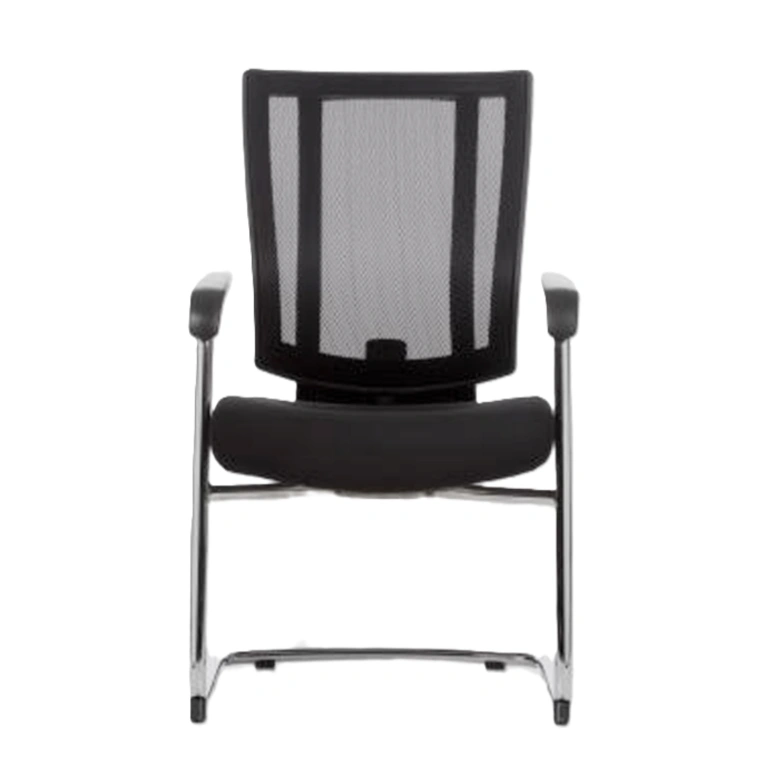 • Leda misafir koltuğu – koyu renk oturumlu, file sırtlı, sabit kolçaklı modern model.