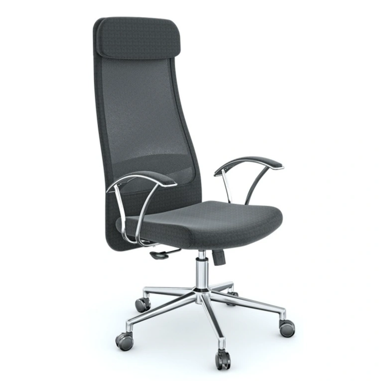 Gri file sırtlı Atlas Yönetici Koltuğu 1176 – krom kol ve krom yıldız ayaklı, yüksek sırt destekli, tekerlekli ergonomik ofis koltuğu.